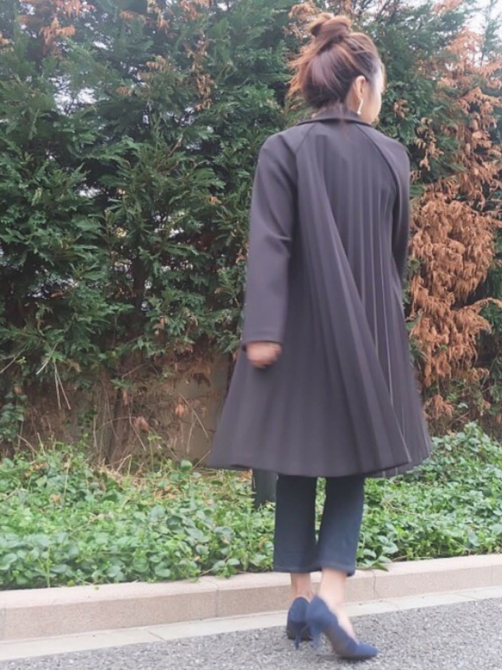 肌寒くなってきたこの時期に ぴったりのコートをご紹介。 ストレッチ性のあるジャージ素材で シワになりにくく 、フォーマルシーンに対応できるコートをお探しの方にオススメ。 写真のように、デニムと合わせて デイリー使いにも◎ ラグラン切り替えなので、肩のラインが女性らしく華奢に見えるのも ポイントのひとつです。