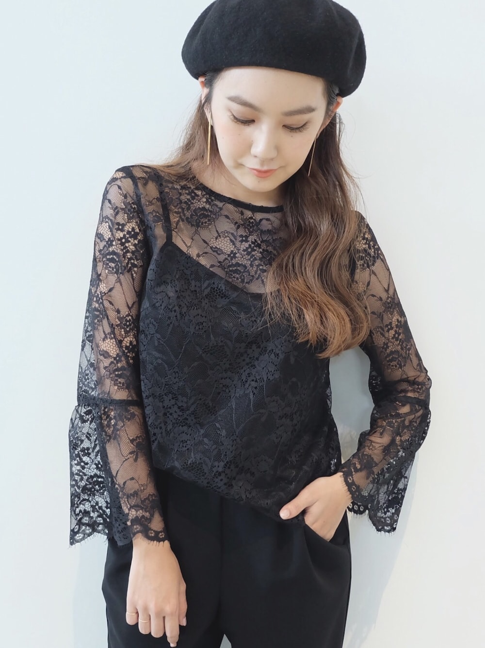 kaene 2017SSの新作商品。 同色のキャミソールつきのレースブラウスは、シーズンレスで、フォーマルにもカジュアルにも◎