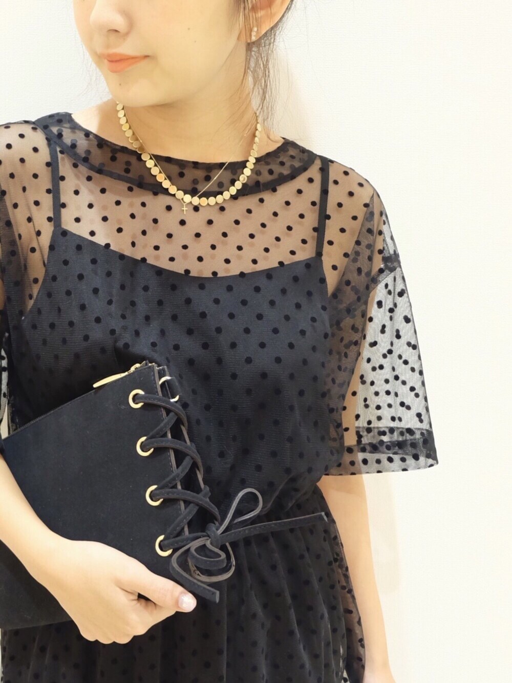 透けドットチュールのミディ丈ワンピース。 インナーのキャミワンピはセパレートになっており、別々での着用が可能。 チュールワンピの下にデニムを合わせたりして、カジュアルなコーディネートもお楽しみいただけます。 長めの袖がついているので 羽織要らずなのもポイント。◎