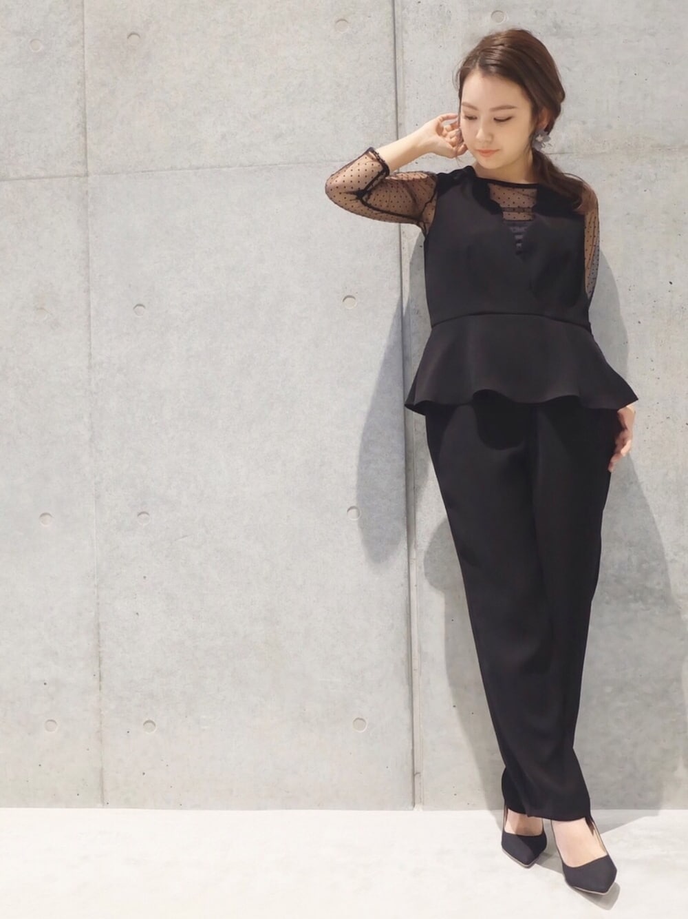 シンプルながら、フェミニンで キャッチーなデザインがkaeneらしい、スカラップ ペプラムオールインワン。 人気のドットチュールインナーとレイヤードすれば、冬のフォーマルシーンでも 羽織り無しで◎