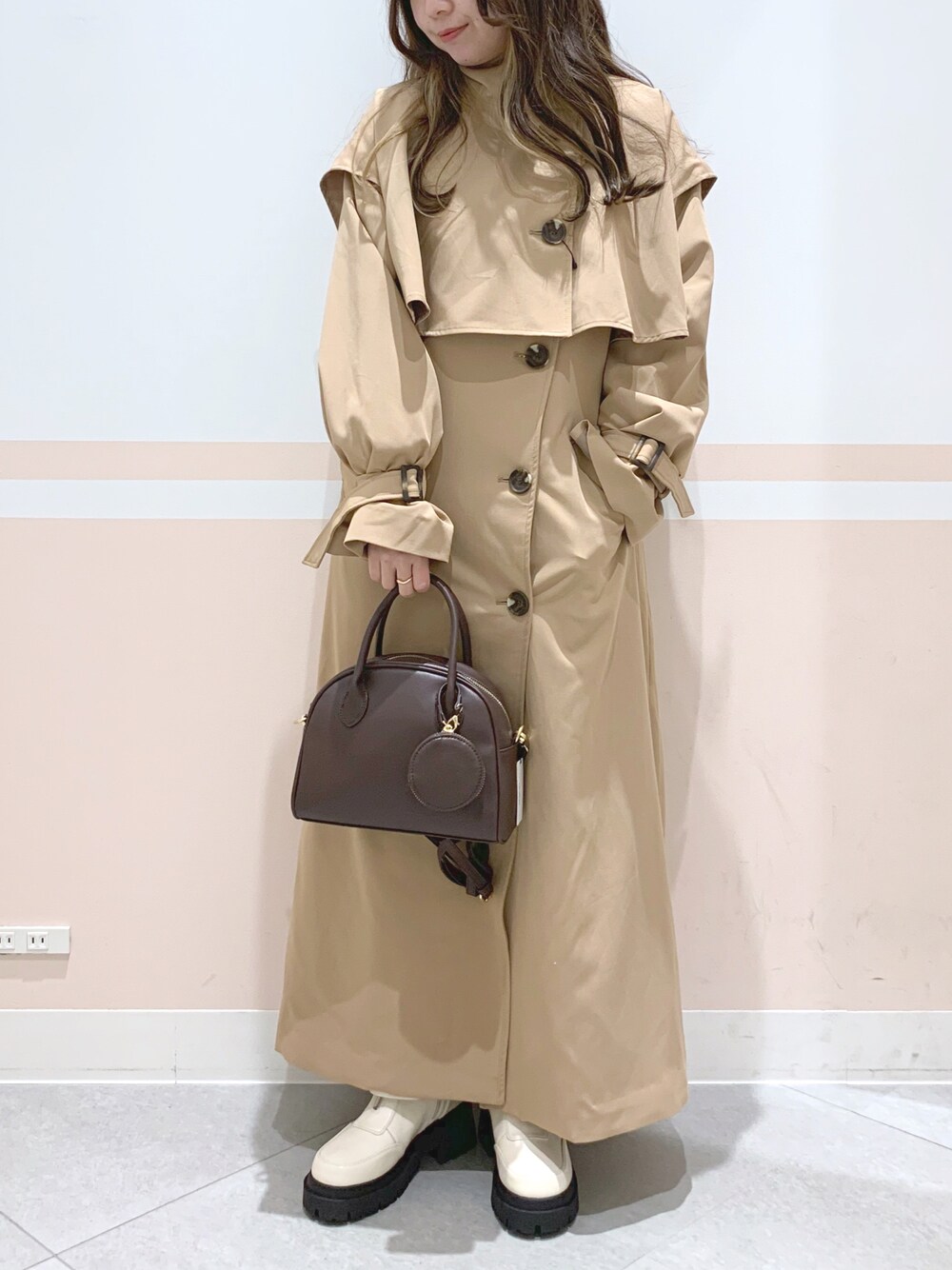 kaeのトレンチコート「スタンドカラーLONGトレンチコート 260936」を使ったコーディネート