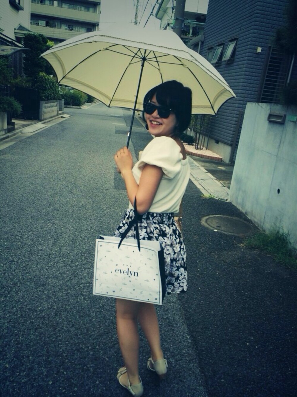 全身evelynコーデ.∘♡⃝ 日傘もってサングラスして エセセレブ風(笑) この日はバレーを見にいってきました! 勝った試合見れてメダル銀以上確定の日だったので とっても楽しかったです⋆⑅✩*॰¨̮ 、