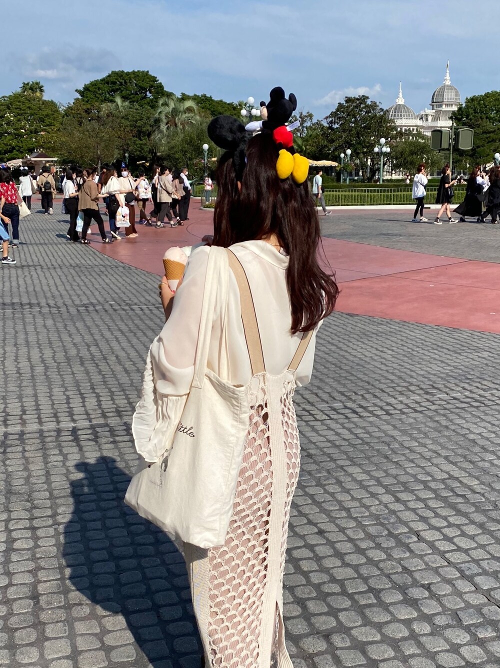 ベージュと淡いピンクでまとめたディズニーコーデ 🍑☁️ Instagram : @____tntn.ko