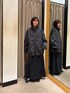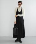 甘くなりすぎないワンピースで首元の紐で雰囲気を変えることができます◎ モノトーンに合わせるのもおすすめですが、あえてメリハリをつけてカラーニットにあわせるのも素敵です💓