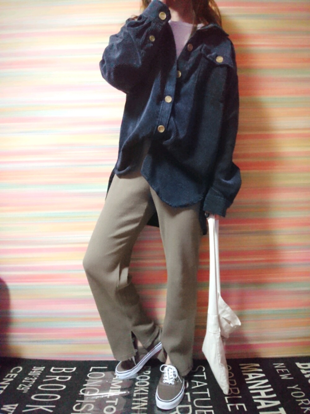このコーデュロイはお気に入り💙 ネイビーも可愛いな😍