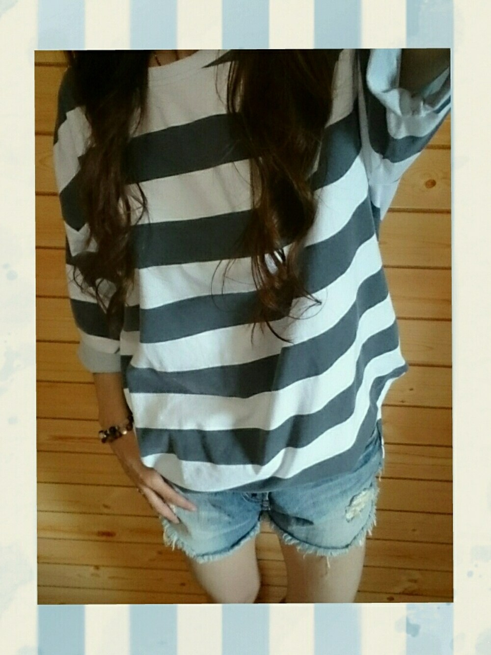 kagari♡のTシャツ/カットソー「【Casual】プリントボーダースリットBig Tee」を使ったコーディネート