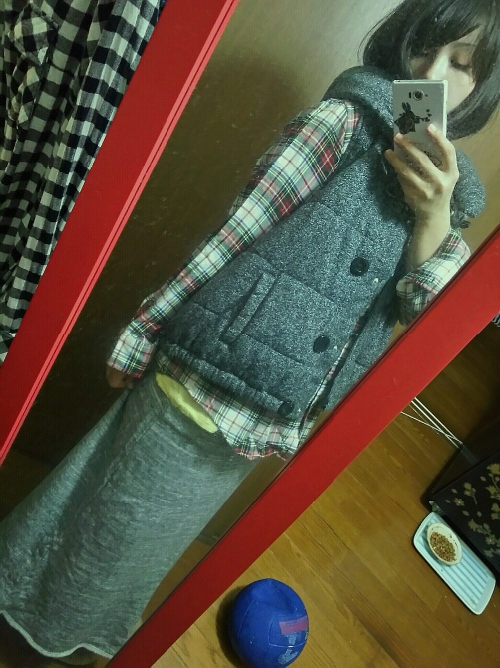 10月から仕事が変わってバタバタヾ(>ω<ヾ )ノシ まったく更新できなかったわたしです。 お久しぶりです。 ここ最近お休みなく働いているので、がっつり遊びに行く事もそうそう無く… 仕事終わりに出かけるときも、通勤着に毛が生えた様な格好しかできなかった次第であります(。•́︿•̀。) 明日は夕方に終わるので、久々ちゃんと洋服着ました。 ロンスカ+ネルシャツ+ダウンベスト の王道な組み合わせ! 小窓には最近のしゃるちゃん(ねこ)とまめちゃん(犬)。 趣味の写真など置いときます。(¨ ) さー!明日もお仕事頑張りましょー