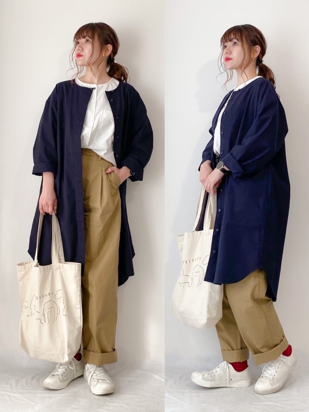 アウターから靴下まで 全部UNIQLOです。 スニーカーは無印良品の プチプラコーデ✨ ノーカラーのアウターは あえて大きめのXLサイズに。 instagram▶︎▶︎@xxokohakxx
