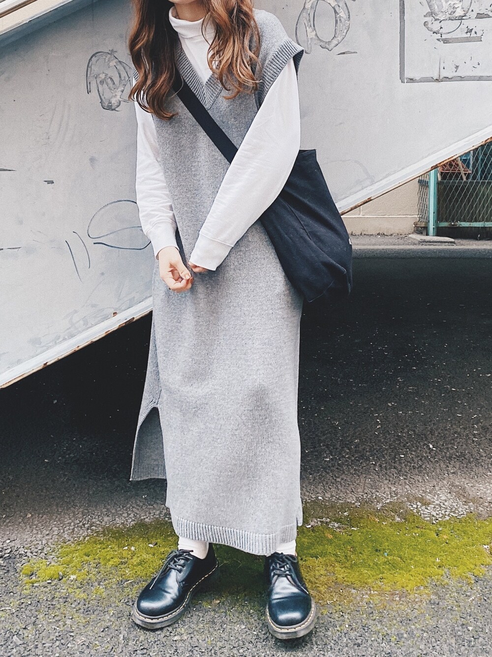 ニットベストワンピに タートルのカットソーを。 モノトーンでまとめました。 instagram▶︎▶︎@xxokohakxx