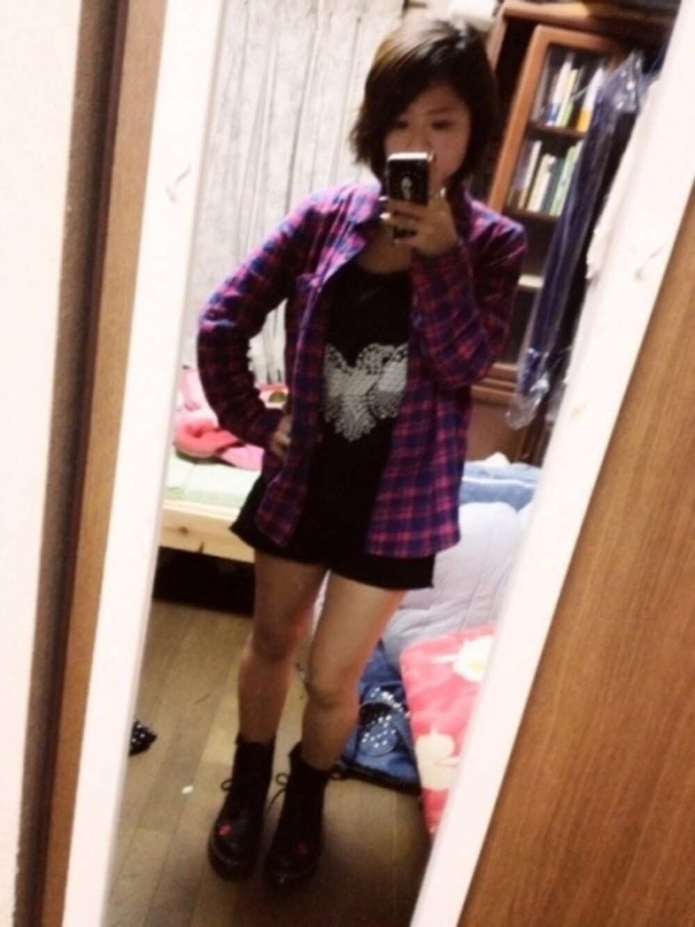 like blogger coordinate 今日ゎめちゃ手抜き! それがブロガー風です!笑 タンクゎインしてチェックシャツをON! これにマーチンの8ホールを合わせて楽ちんコーデ♡画質悪めですごめんなさい>_<