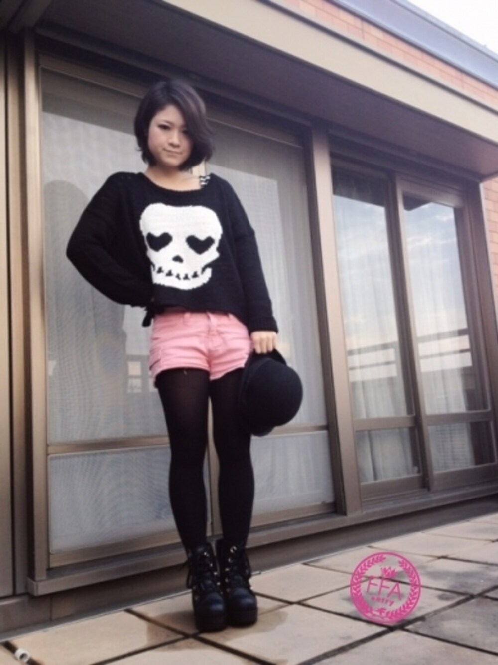 Black × Salmon pink coordinate 最近自分の中でブームのサーモンピンクとブラックの合わせ♡ビビッドピンクが永遠の私のテーマカラーだけど、たまにゎ優しい色合いも着たい♡笑 髪ゎ大きくウェーブを作って女性らしく♡