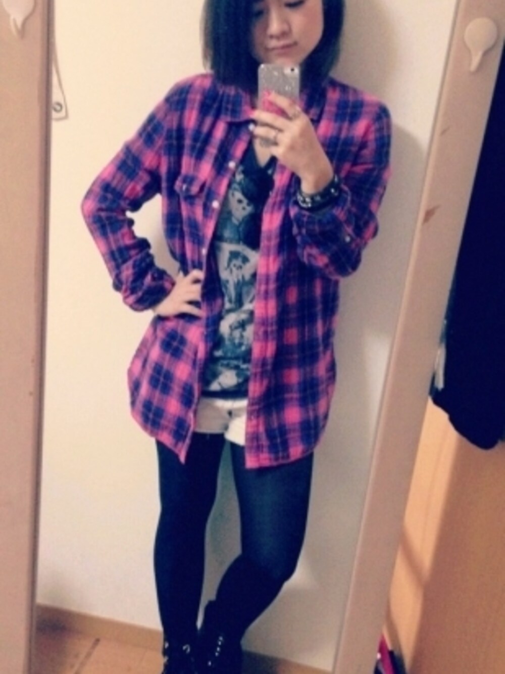 Victoria's secret coordinate! 相も変わらずネルシャツloverです\(^o^)/笑 これにメンズTゎもはや私の制服ですね笑 白パンゎ流行りみたいですが、一枚あると使えますよねー\(^o^)/ 髪の色をグラデーションにしましたん♡ 加工なしです\(^o^)/