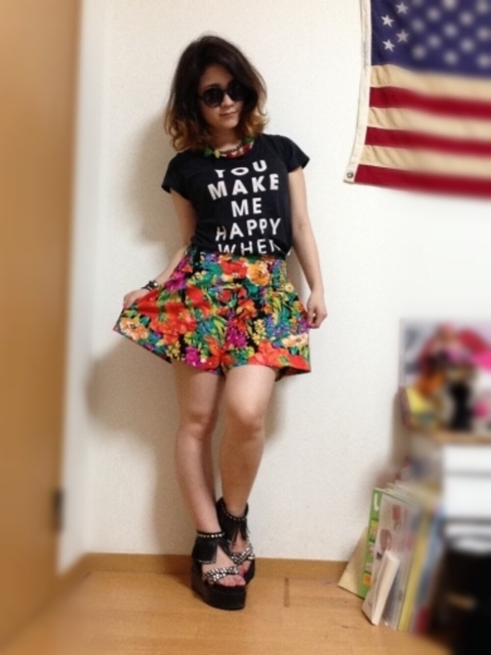 girls be ambitious. 今日ゎ前も着たアロハ柄のパンツ\(^o^)/ けど前回とゎちょっとちがうんですー! 実ゎ大幅に長さをカットしました!笑 足が短いといろいろ大変…笑 これに浮かれネックレスと浮かれシューズで攻め女子コーデ完成です( ^ω^ )笑