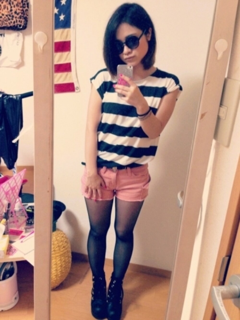 girl's holiday style! 今日ゎ夏!の気分です! ボーダー×カラパンで元気に\(^o^)/ ボーダーTゎZARAのキッズですw デニムシャツゎANAPの! スエット生地でらくらくー♡