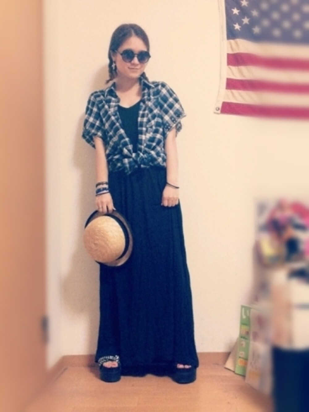 work hard and then? シンプルかつ楽ちんコーデ! チェックシャツを結ぶだけでカントリー! そうカントリー娘!← いっぱい働くときゎこうなるw 三つ編みブームつづいてますww