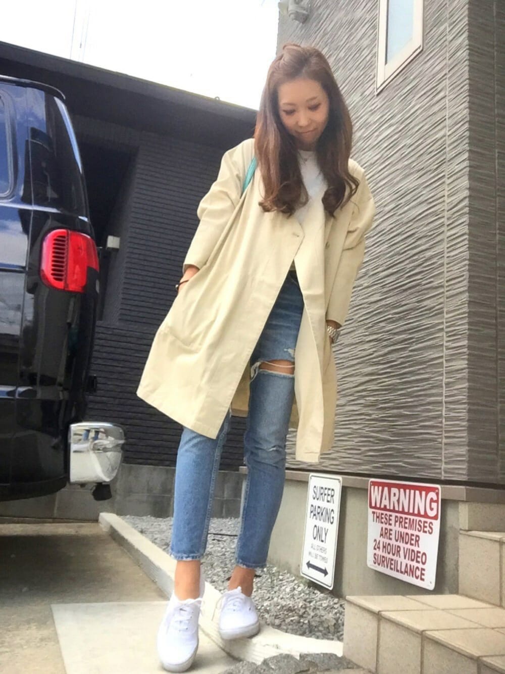 春っぽいコーデ。 やっぱりスニーカー。 ミリタリーJKの形が可愛い♡