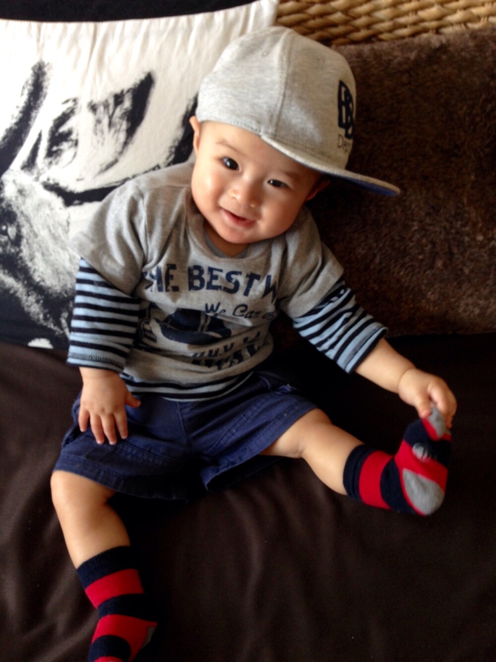 ばぁばが遊びに来てくれて、一緒に公園へ。 あったかくてお散歩日和でしたー。息子はごきげん! よく見えないけどヨット柄のTシャツ着ています(o^^o)