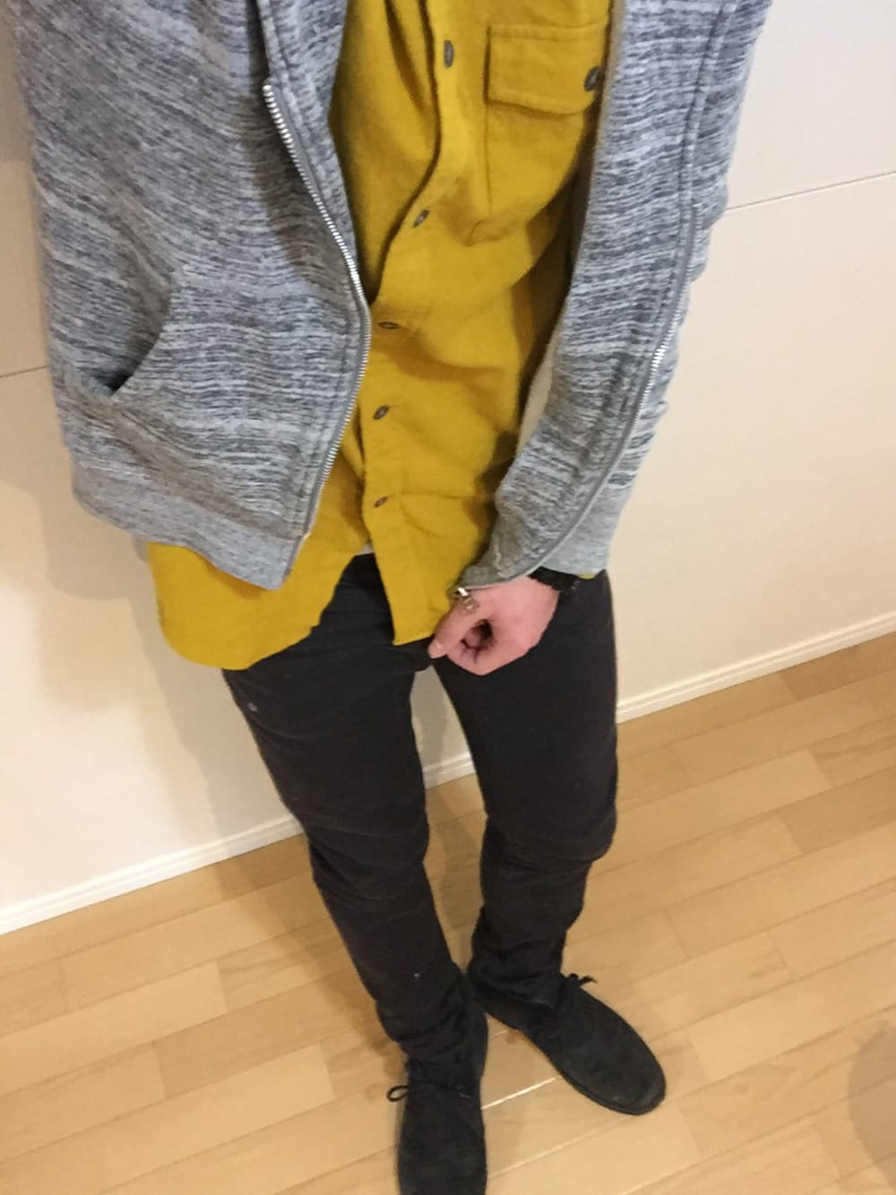 靴わかりにくいけどネイビーです笑 グレーのパーカーは使いやすいです(^ω^)