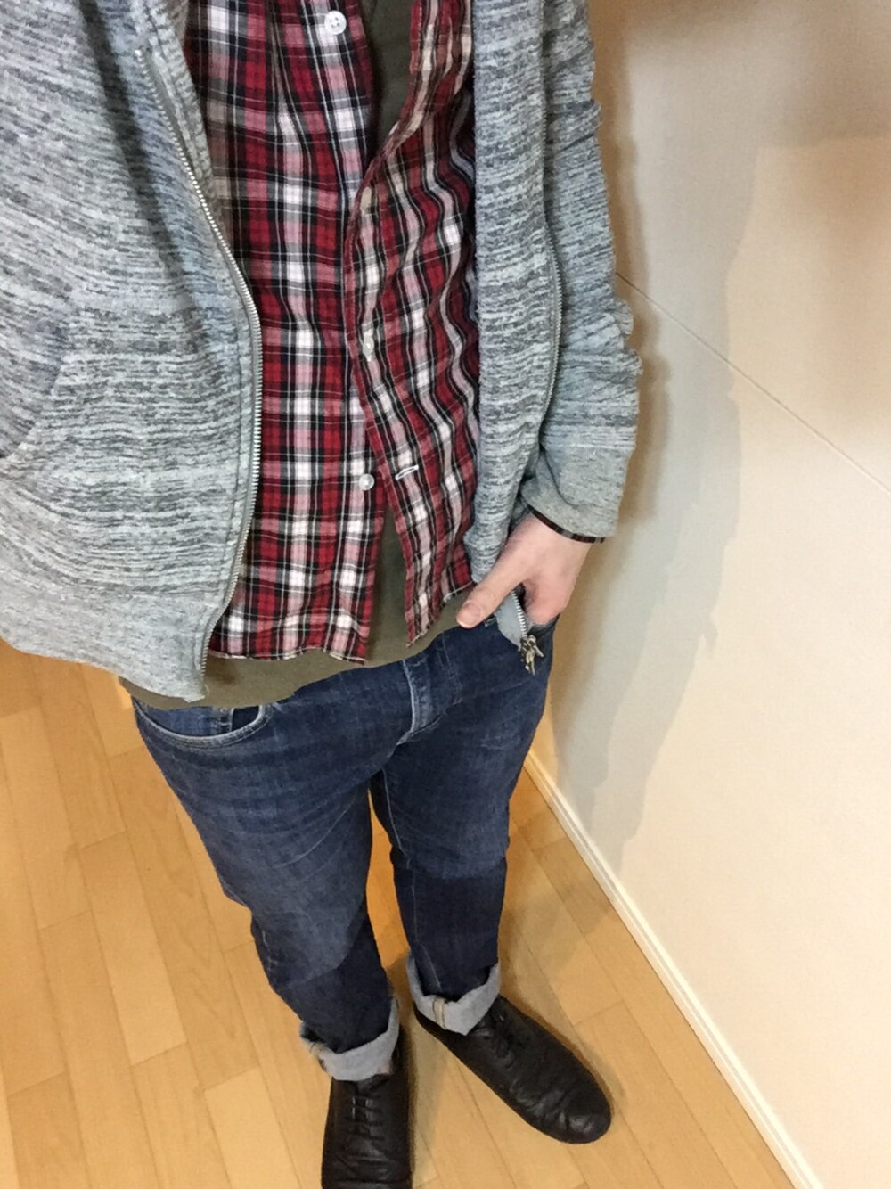 あったかいのか、寒いのか、わからんコーディネート笑 足短いけどロールアップ
