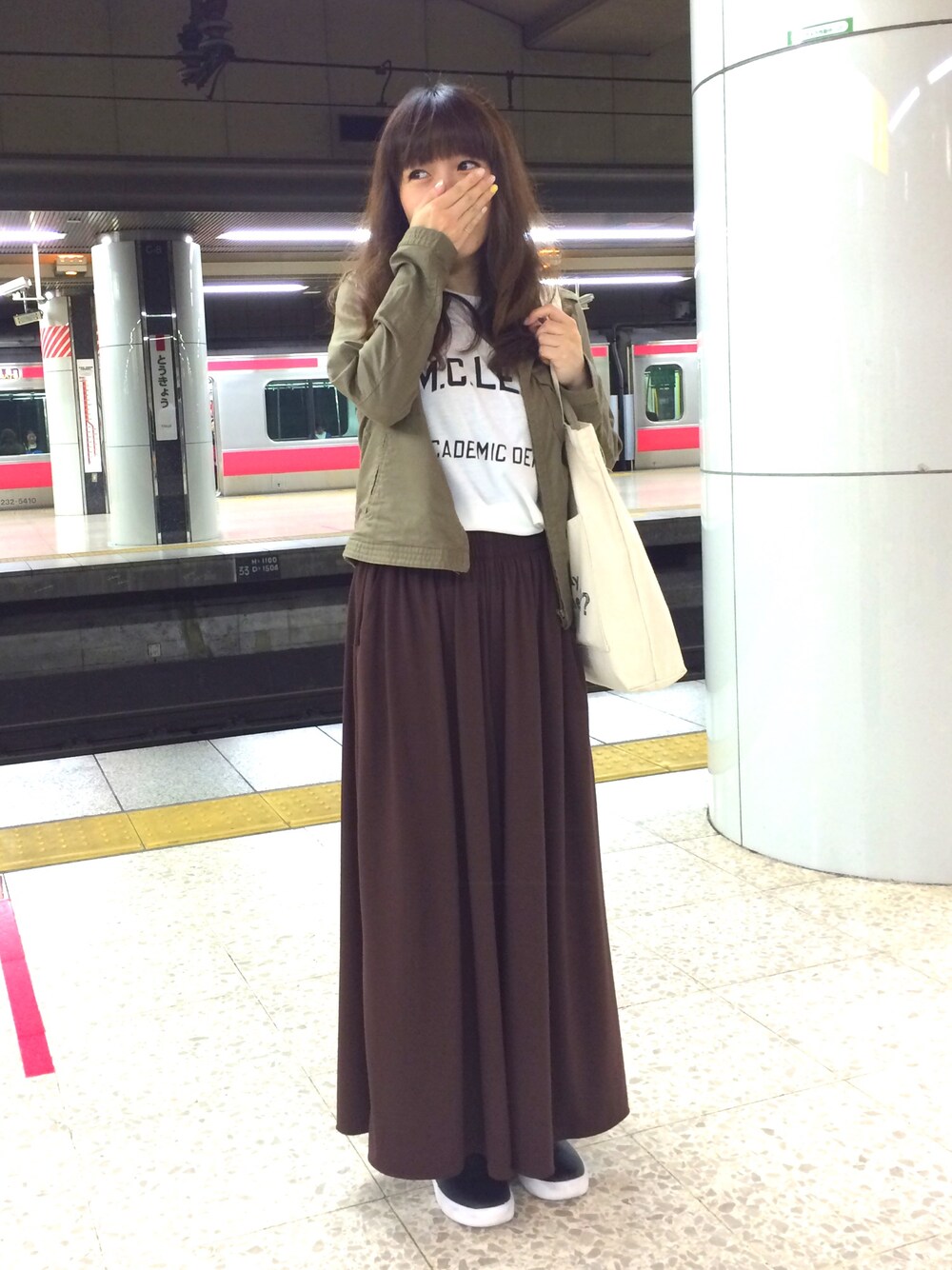 昨日のコーデ☆ この間の色違い〜 何故か秋色になりました 笑 小窓のオヤツは東海道新幹線限定のポテチとコンビニで買えるポテチ。 なんと伊勢海老味っ♡ 騙されて最初、コンビニのポテチを渡された💧 気づかず喜んでもーた…
