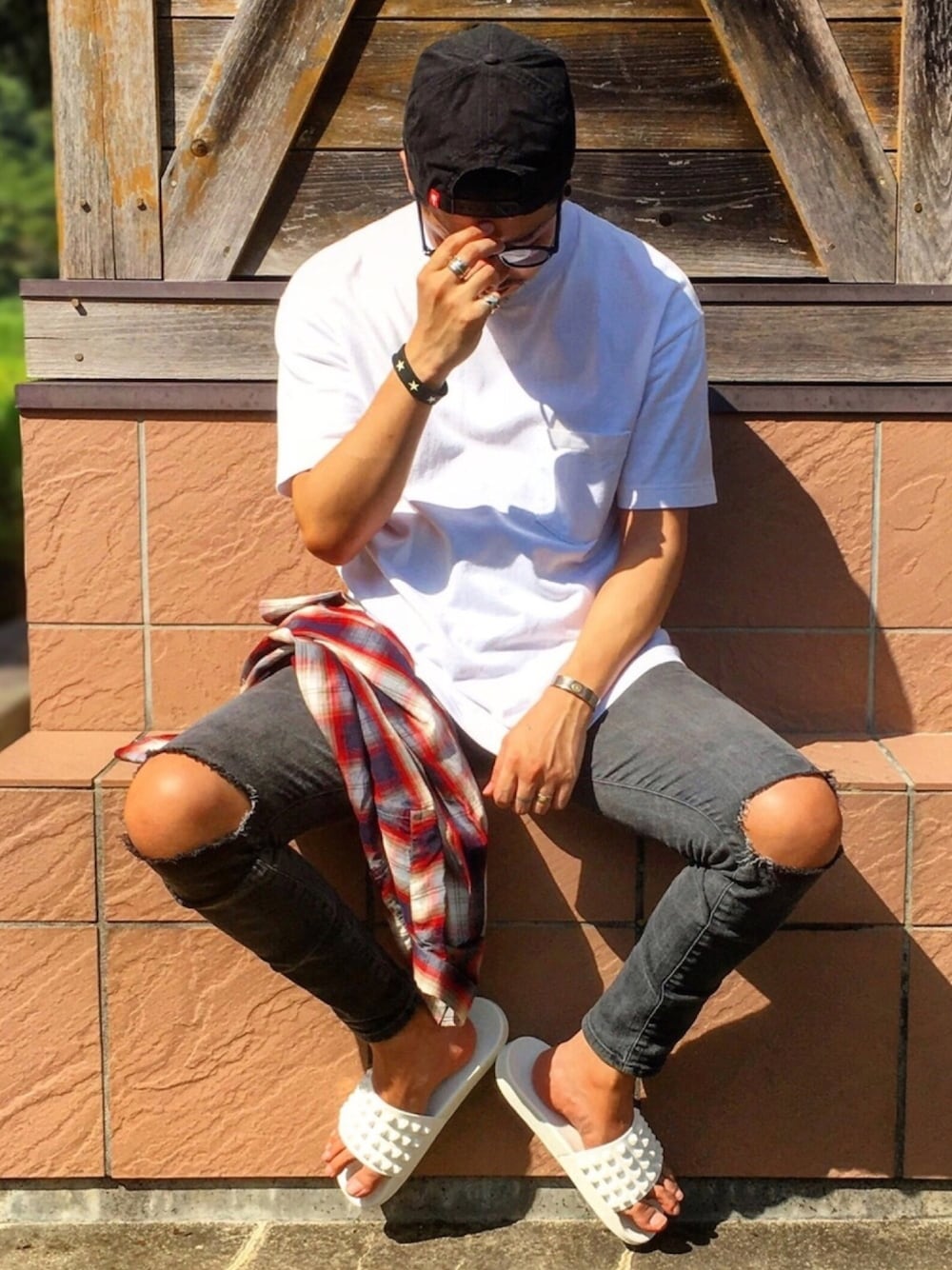 撮り溜め1 連投になるので間隔あけてアップ予定 ど定番のモノトーンサンドにオンブレねじ込み サンダル履き心地よし