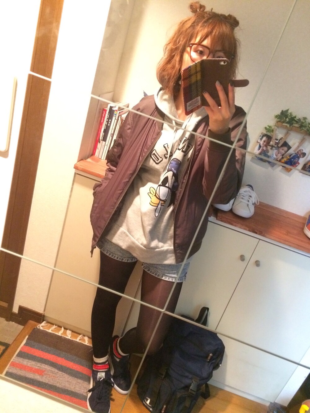 MA-1はUNIQLOのメンズS。 メンズライクやったからヘアスタイルは猫耳風で♪