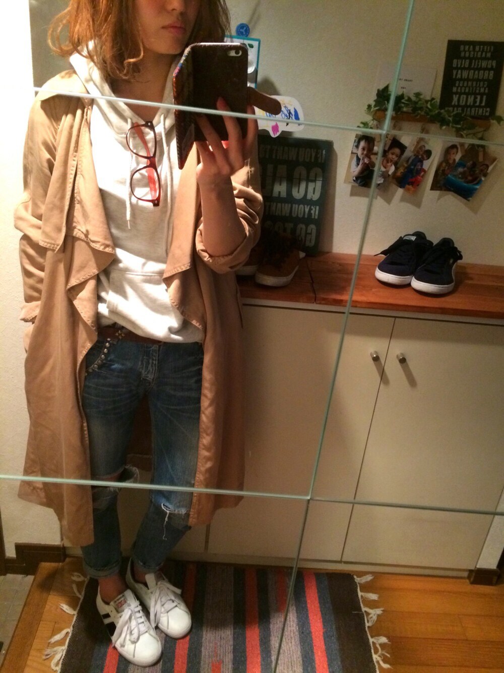 パーカー×トレンチやりたかったやつ☆ OLさんみたいになるのが嫌でずっと避けてきたトレンチコート。 これはキッチリしてなくてクタクタ感がたまらず遂にお買い上げ〜 今日のお買い物でデニムジャケットGETしたから次回はそれもINしたいなー♪