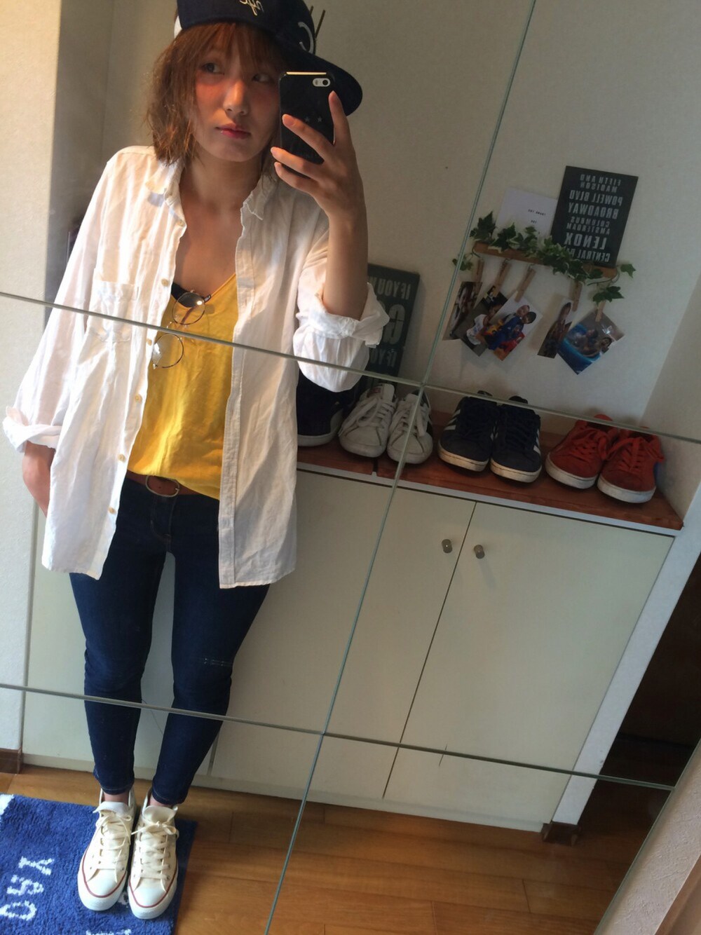 ZARAで激安やったデニム。 多分20本以上は軽くあるデニムLOVEな私ですが、ダメージデニムが好きやからか意外とここまでシンプルで濃いめのスキニーは初めて🤔💡 インナーはGUのレースのブラフィールキャミちら見せで。 さりげに女子感足しましたw