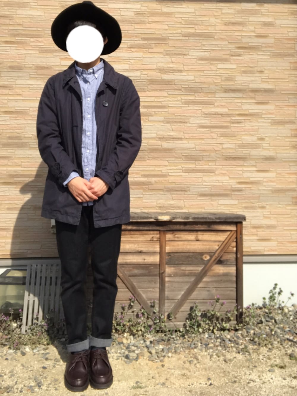 バイトの休憩中です ギンガムチェックシャツにステンカラーコートあわせました😆 シャツにアウターさっと羽織るだけのコーデ楽ちんで好きです