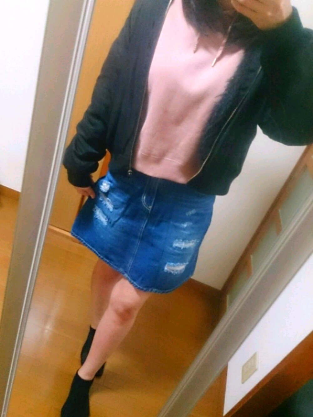 デニムスカート愛用♡ 初めてダメージデニム挑戦してみた✨ 最近こういう格好ばっかりしてる笑