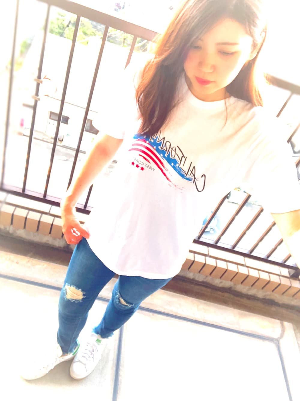 インスタのフォローさんがデザインした オリジナルTシャツ♡ フラッグと星のデザインに一目惚れ💕 インスタでリンクコーデ載せてるので よかったら見てください♩¨̮⑅*♡