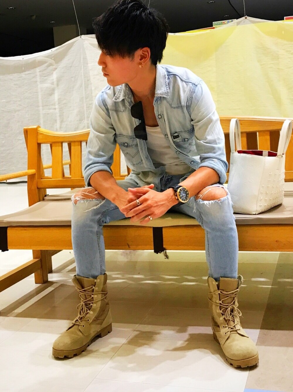 今日はデニデニコーデ🙂 まだシャツは少し暑いと思い 中はタンクトップ😉 久々にブーツ履いたけど やっぱりブーツはいいよね🙊🙊