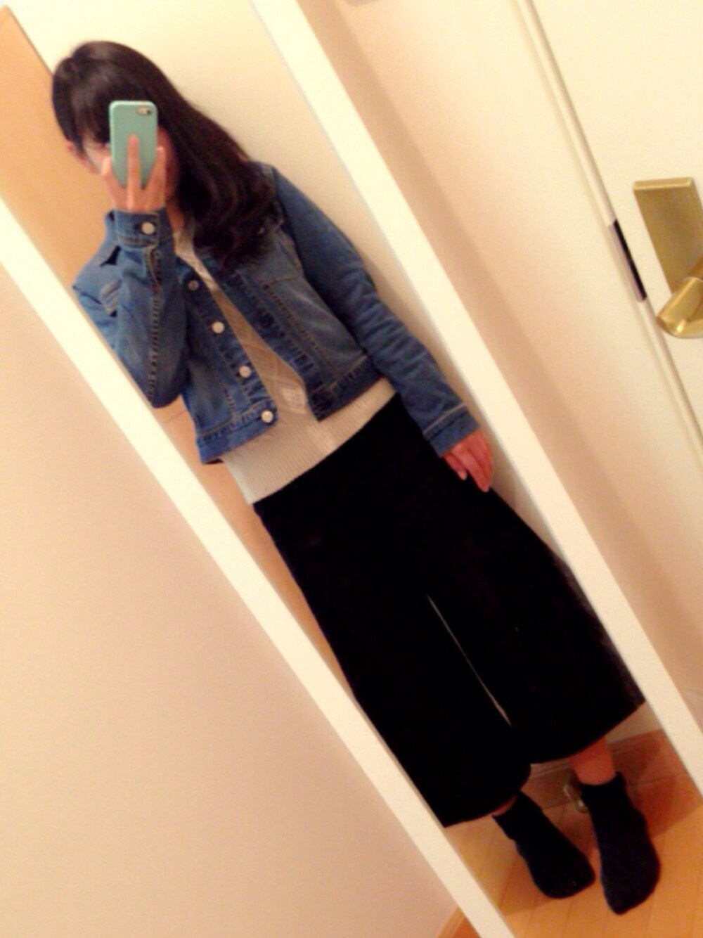 黒のガウチョに靴下は緑です☘