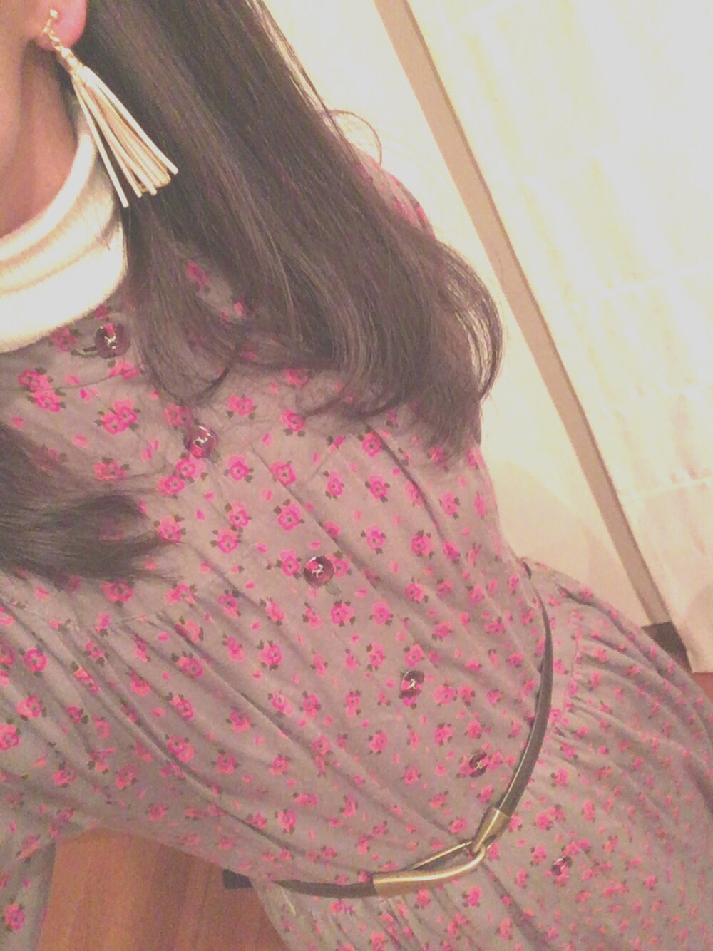 久しぶりの投稿! おばあちゃんがもう何十年も前に洋裁で作ったワンピース👗👠 かわいい〜😳💗✨ 茶色いベルトと大きめのイヤリングを合わせておでかけ👜🌟