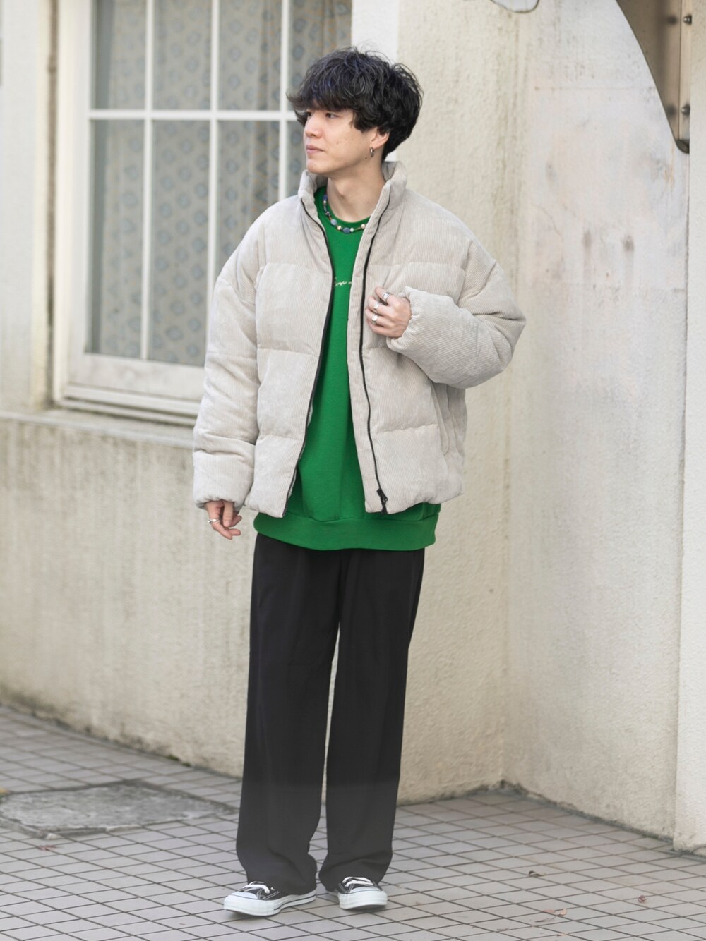 kainan(SENSE OF PLACE ららぽーと立川立飛)のダウンジャケット/コート「グリーンダウンコーデュロイジャケット」を使ったコーディネート