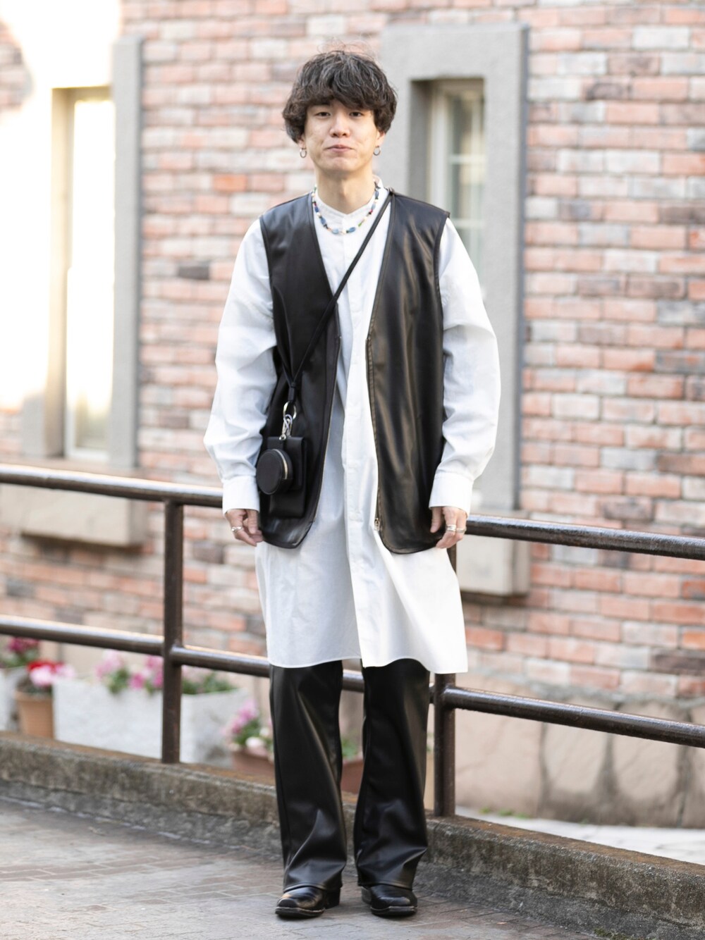 kainan(SENSE OF PLACE ららぽーと立川立飛)のベスト「『セットアップ対応』 フェイクレザージップベスト」を使ったコーディネート