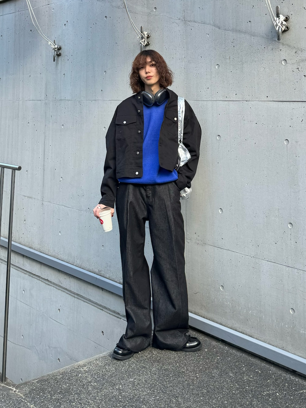 ブラック系のローファーを着用したメンズの冬コーディネートの1枚目の写真