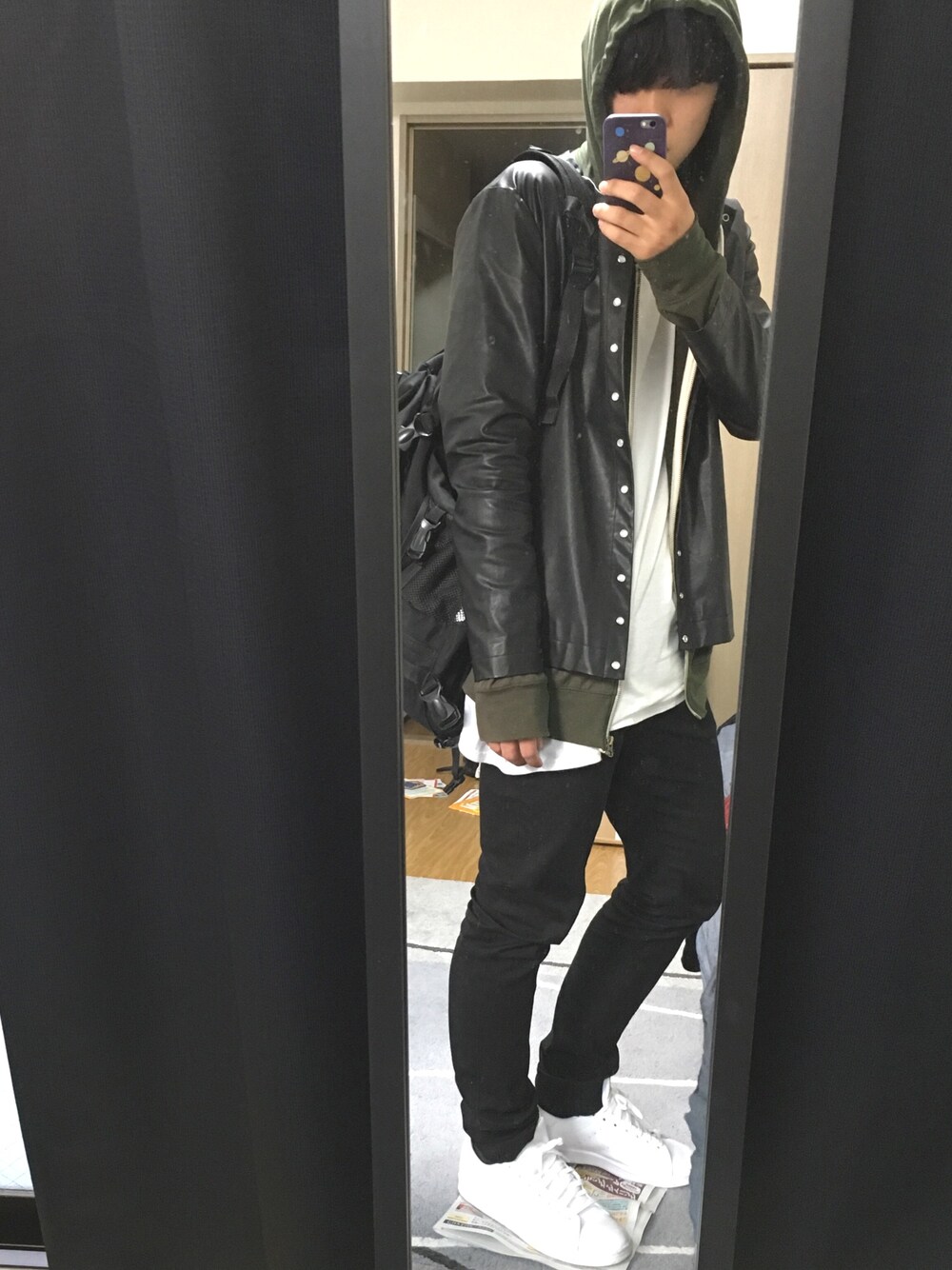 今日はバイト先の飲み会で朝まで… 寒いからジャケットの下にパーカー パーカーはGUのものでサイズはXL。でかめにゆったり着るのが好きです