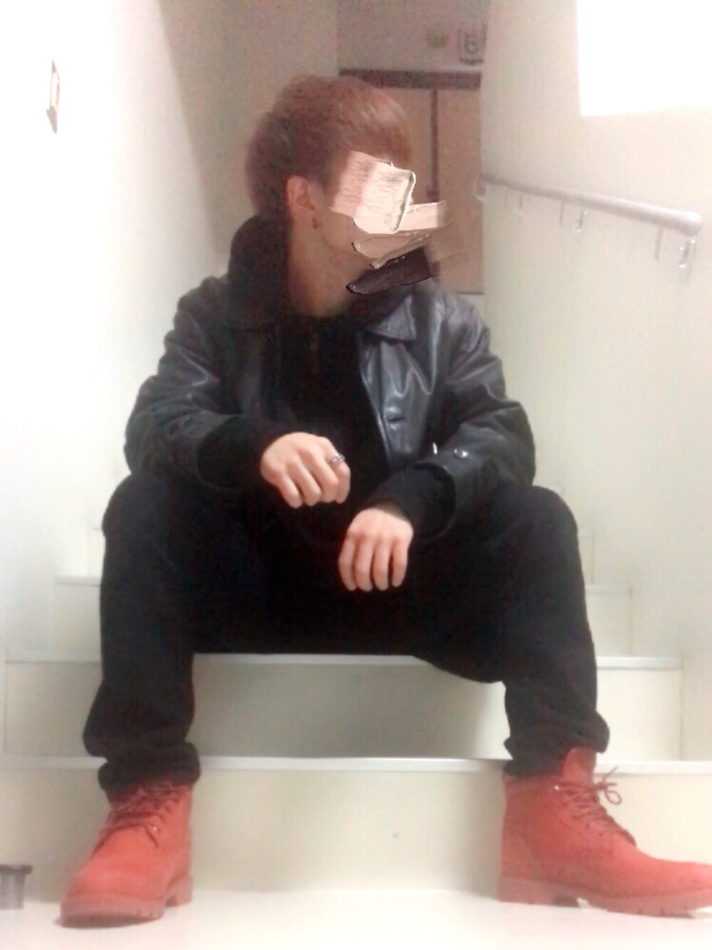 こんばんは 画質悪っ、笑 今日は靴を目立たせるために真っ黒の服にレザーコートを合わせて見ました いいね、フォローお願いします😊