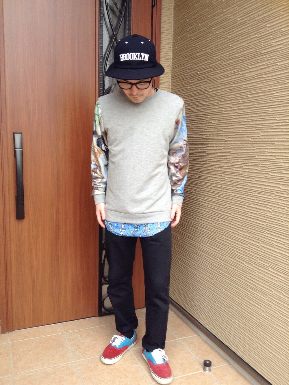 Forever21のTシャツをスウェットの下からチラ見せ。 古着屋で購入したVANSもかっこいい。 そして、安い。
