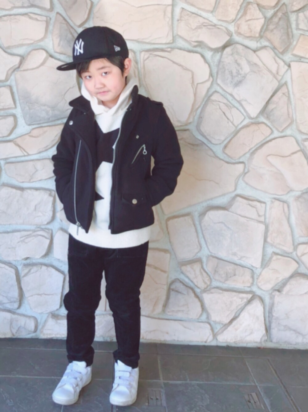 Kajのキャップ「ニューエラ キャップ キッズ コーデュロイ ニューヨーク ヤンキース」を使ったコーディネート
