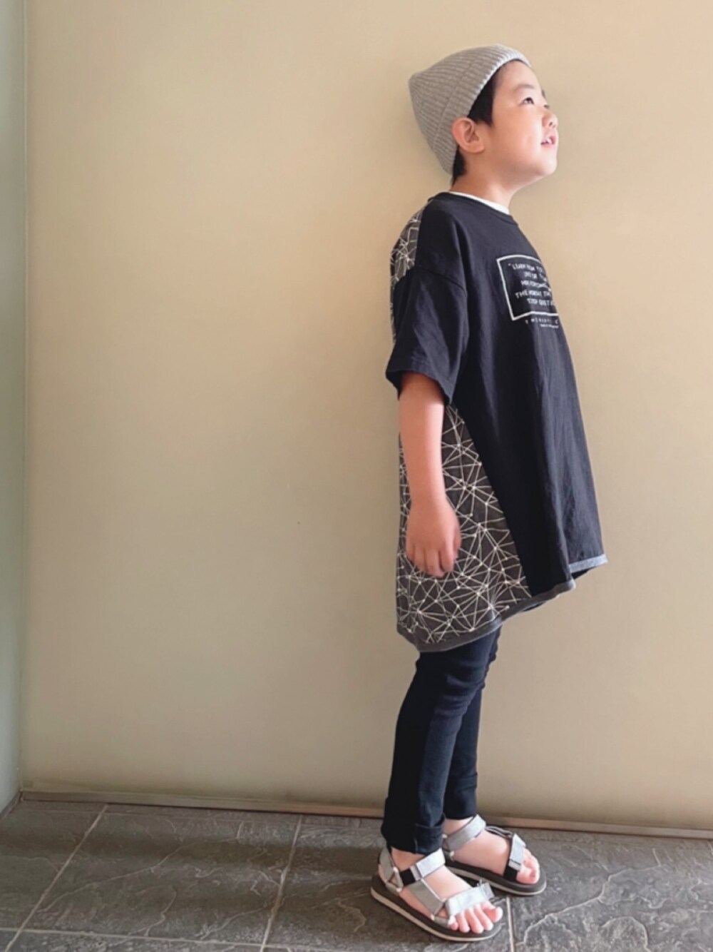 お下がりでいただいたTシャツなので 古着ってことで! 男の子のチュニック丈も可愛いな〜