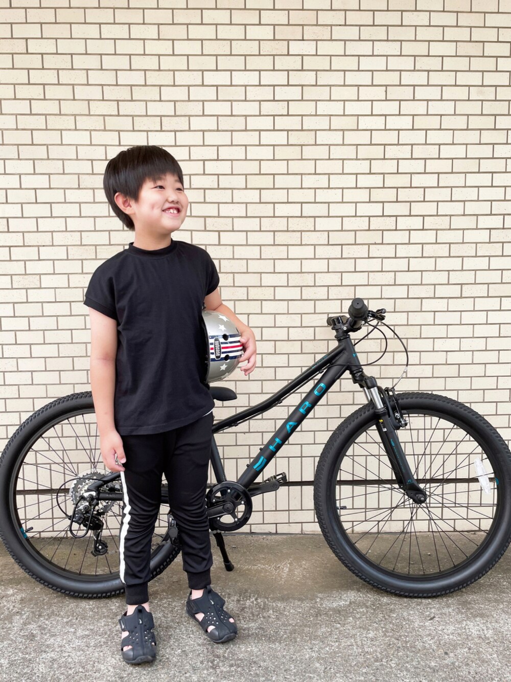 やっと新しい自転車ゲット! HAROの24インチ♪ かっこいい〜! まだ大きいけど、ギリ乗れたし 小6までは乗ってください!! あと、エアリフトが甲高横広で履けなかった息子。。悔しい!! このデザインなら履けました。 ご参考までに。。。 ブランシェスのフレンチスリーブシャツは 夏セールでゲット:)