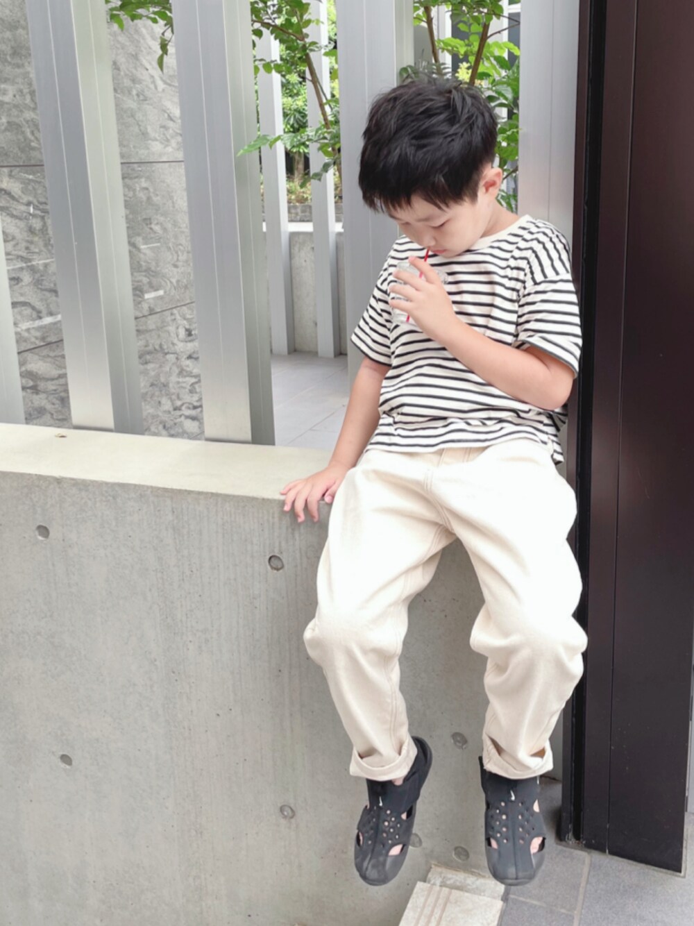 超ご近所コーデ お散歩コーデ さすがにもうサンダルも終わりかなー オフホワイトコーデだけどベージュとも言わせてください。違うか?!