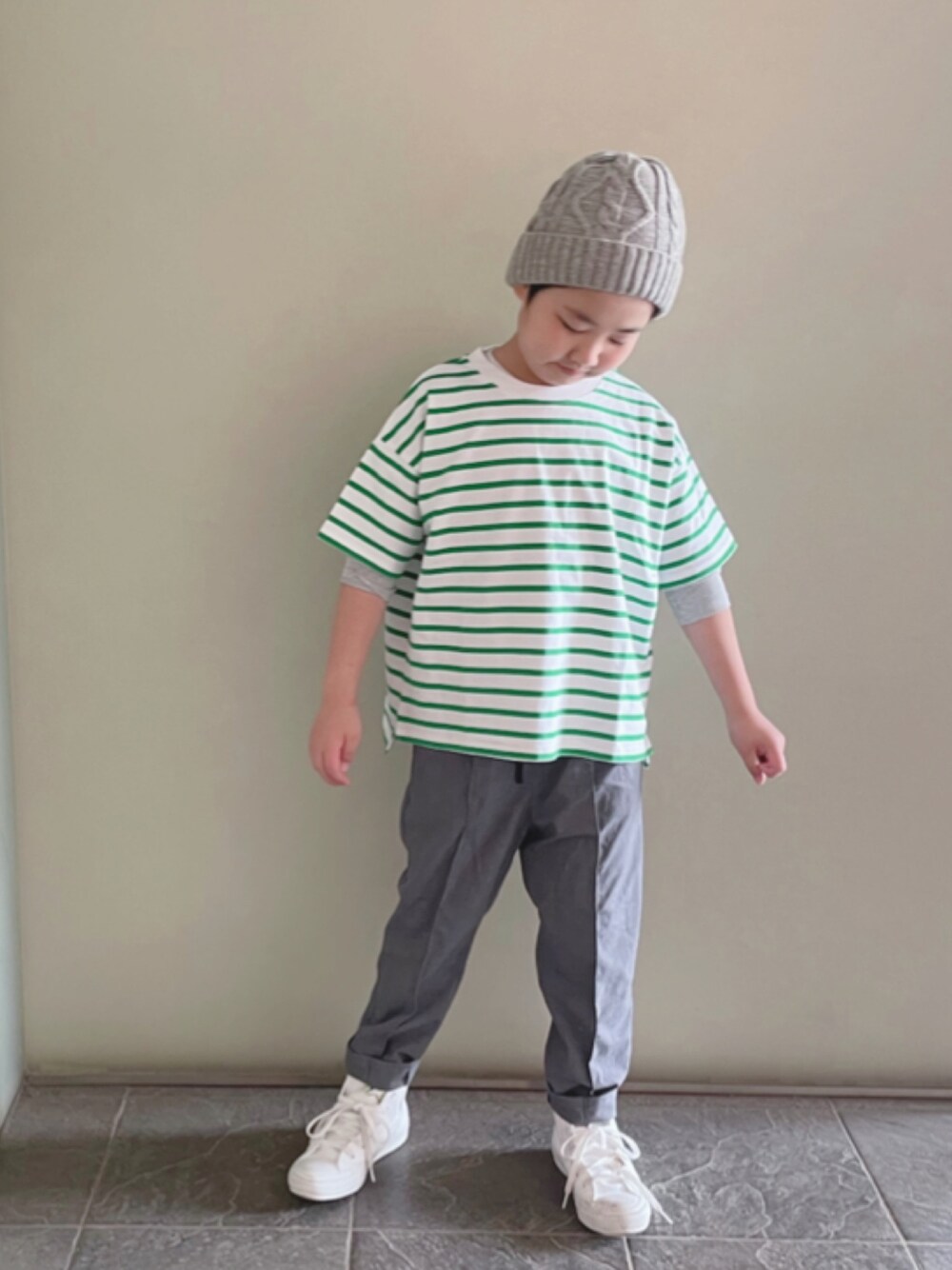 Tシャツの季節ーー! 鮮やかなグリーンがとっても素敵〜 暖かくなると明るい色を着せたくなるね!