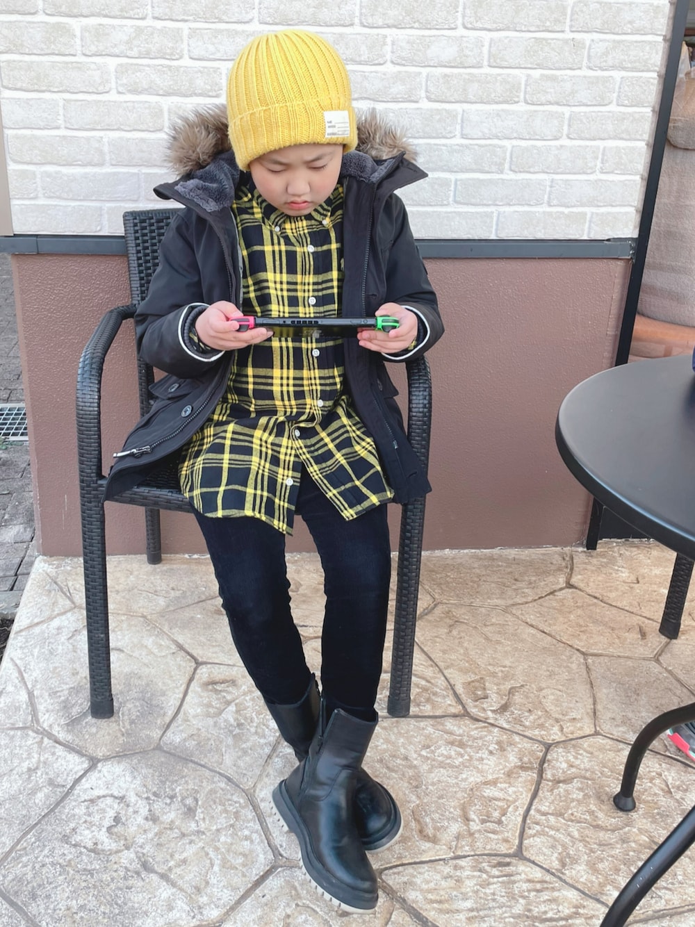 3歳頃に着ててお気に入りだった イエロー×ブラックのチェックネルシャツ またサイズアップして購入! やっぱり可愛いなぁ〜♪ 那須塩原へ 寒いと思ったら例外に暖かくて ダウンは失敗でした。。