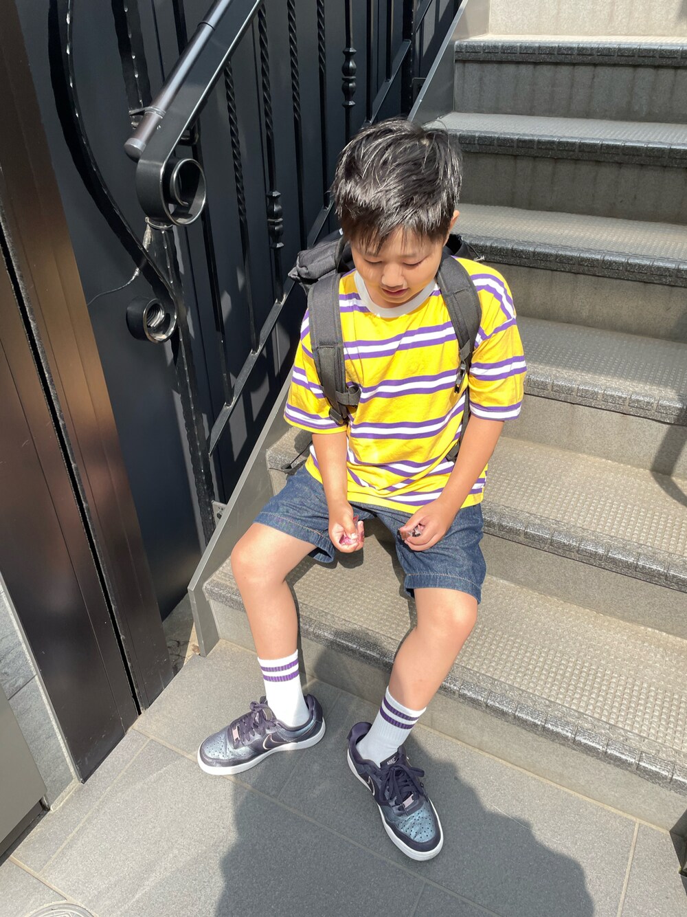 ダイソーの推しカラーラインソックス☆ 100円でいろんなカラーの ラインソックスがあって全色買っちゃった! ありがたい🎵 今回さTシャツのパープルと合わせて パープルのラインソックスで。