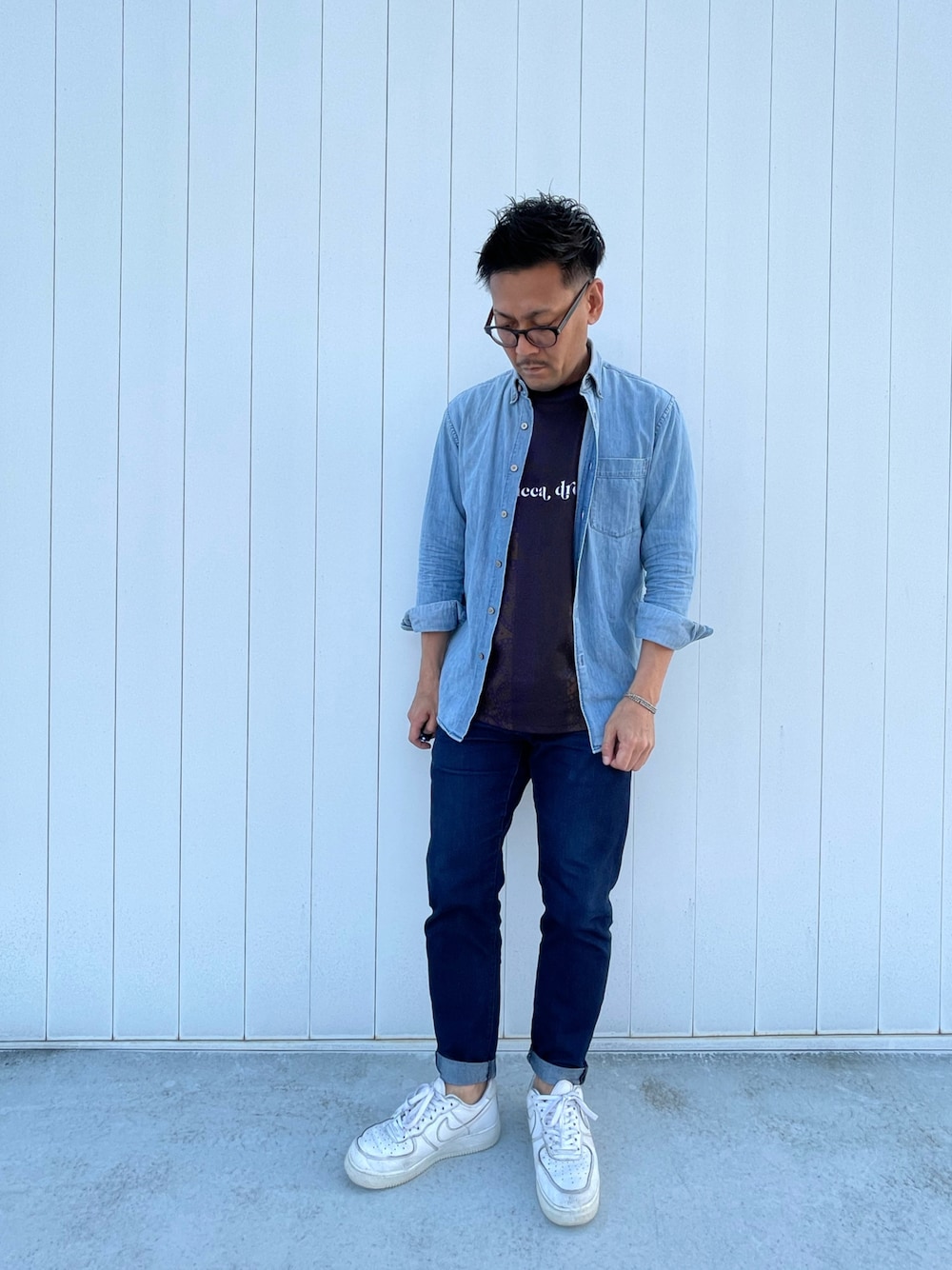 puccadroowa game shirt コーディネート。 今日はブルー系でまとめました。