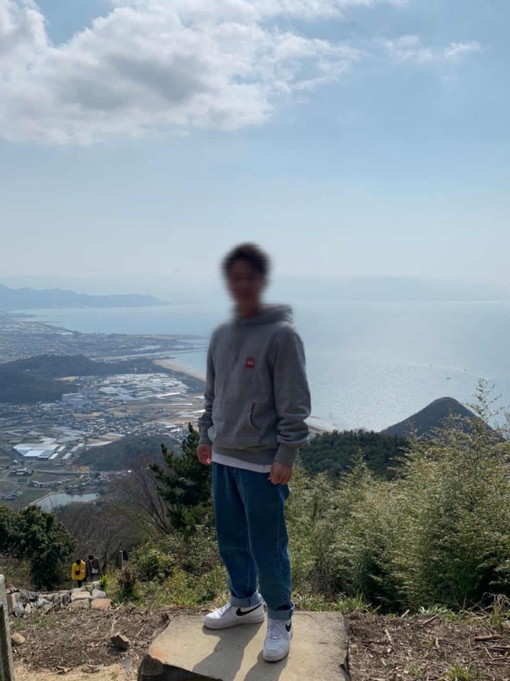 グレー系のパーカーを着用したメンズの春コーディネートの1枚目の写真