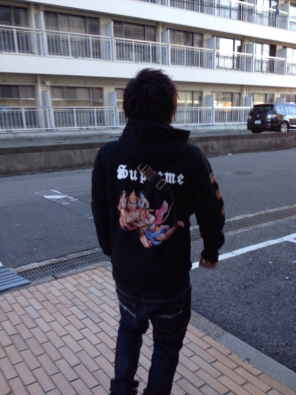 ハヌマーン神のパーカーが お気に入り。 デニムはヌーディのノンウォッシュで シンプルに決めてみました。 お気に入りブランドです。